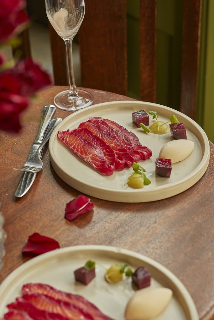 Start things off with Beetroot Cured Chalkstream Trout, paired with horseradish sorbet, apple purée and vibrant marinated beetroot. Fresh, elegant and just the right amount of indulgent.